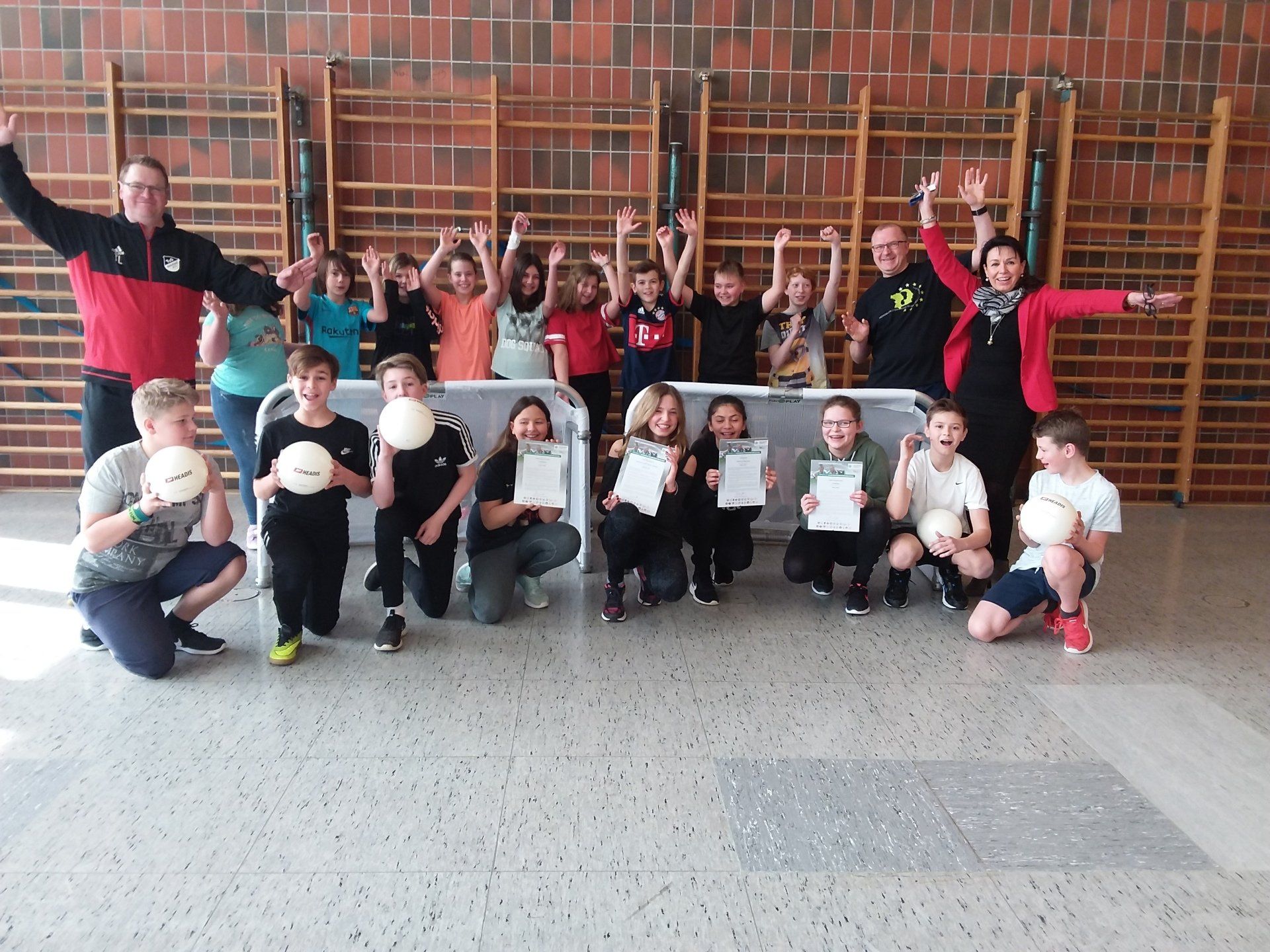 Die erfolgreiche Kooperation der Freiherr-vom-Stein-Schule mit den Hünfeldener Vereinen bringt für alle große Vorteile. Dazu zählen nicht nur die gemeinsamen Unterstützungen bei diversen sportlichen Veranstaltungen, wie z.B. das DFB-Fußballabzeichen der Klassen 3 und 5, die Fußballturniere oder das Bambinimobil. Die Kooperation ermöglicht auch, durch ein Förderprogramm neue Sportgeräte anzuschaffen. Auch diesmal konnten damit für unsere Schule zwei robuste Aluminiumtore und 5 Headis Bälle gekauft und somit von den Schülern genutzt werden. Ebenfalls konnten die Vereine nicht mehr benötigte Fußbälle der Schule spenden.