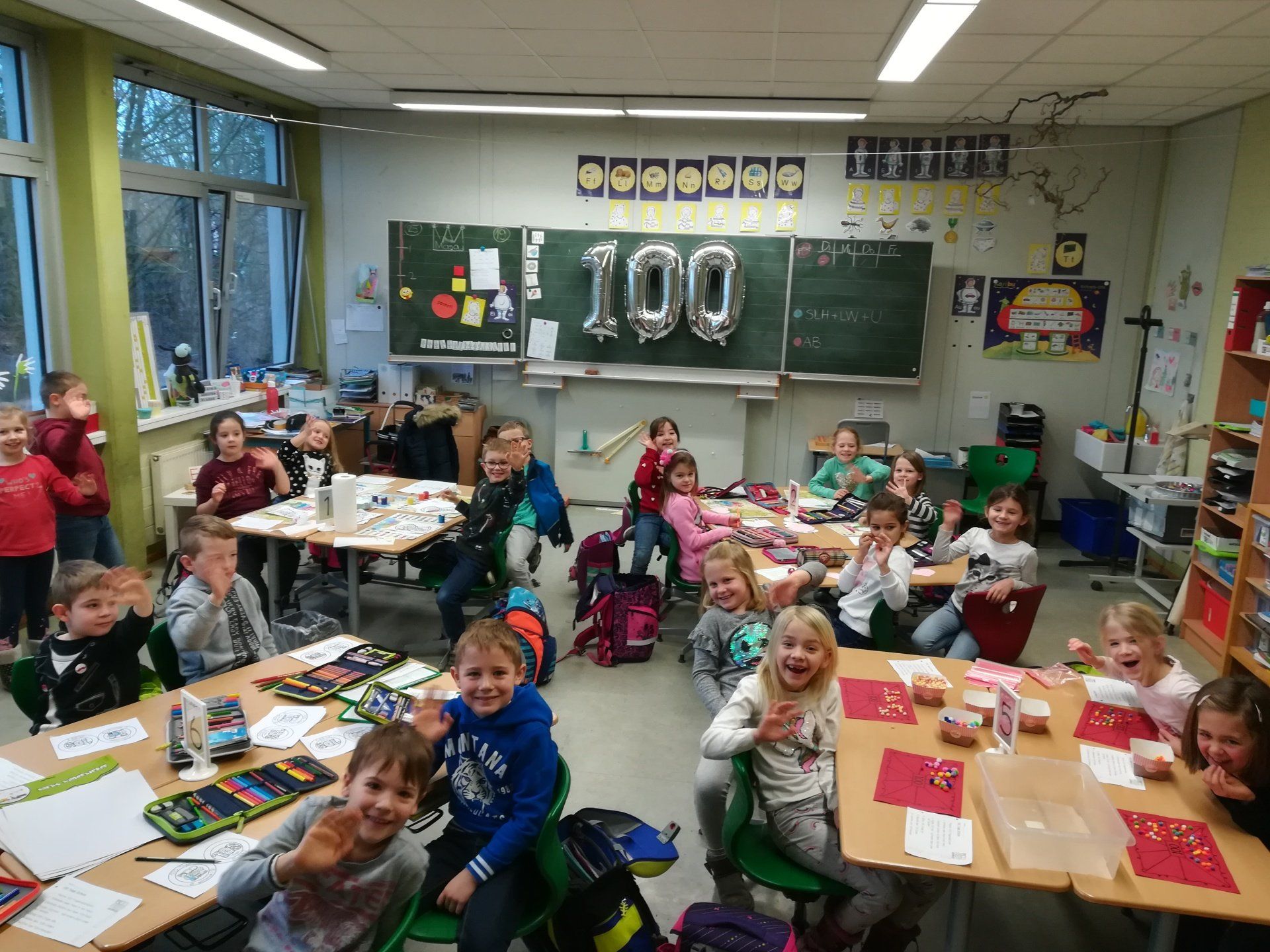 Am Montag, dem 28.01.2019 feierten unsere Erstklässler ihren 100. Tag in der Schule. Dafür wurde fleißig gebastelt, gezählt und gestempelt.