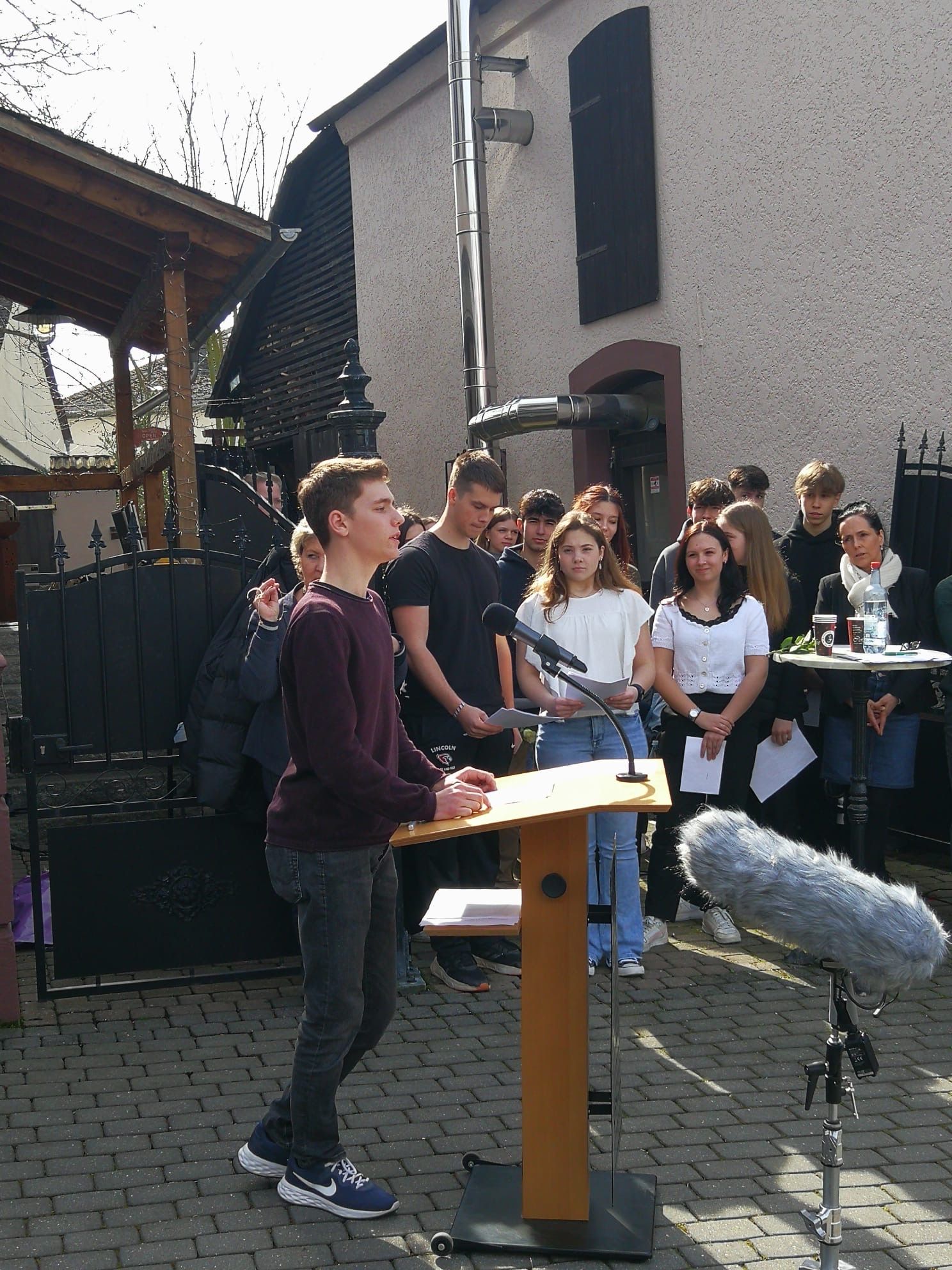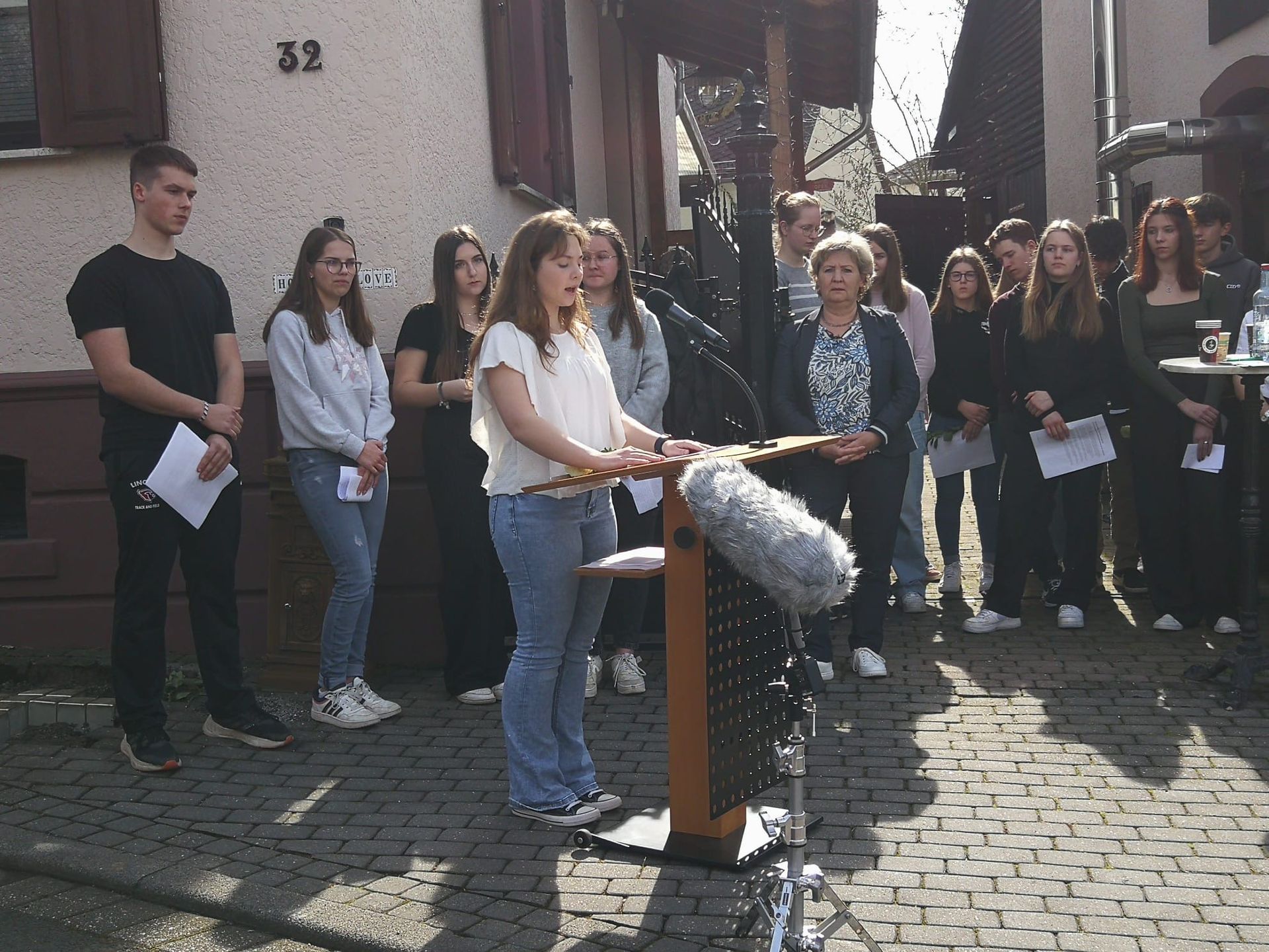 Zu diesem Anlass war die Öffentlichkeit eingeladen, Vertreter der Gemeinde, Lehrkräfte und Schulleitungsmitglieder der Freiherr-von-Stein-Schule und Bürgerinnen und Bürger. Nachfahren der Familie Löwenstein waren zum Teil aus England und den USA gekommen. Damit die englischsprachigen Gäste das Gesagte verstanden, wurden alle Texte von der Gastschülerin Lillian Blohm und dem Gastschüler Miles Schoenen aus Michigan (USA) übersetzt und eindrucksvoll vorgetragen.