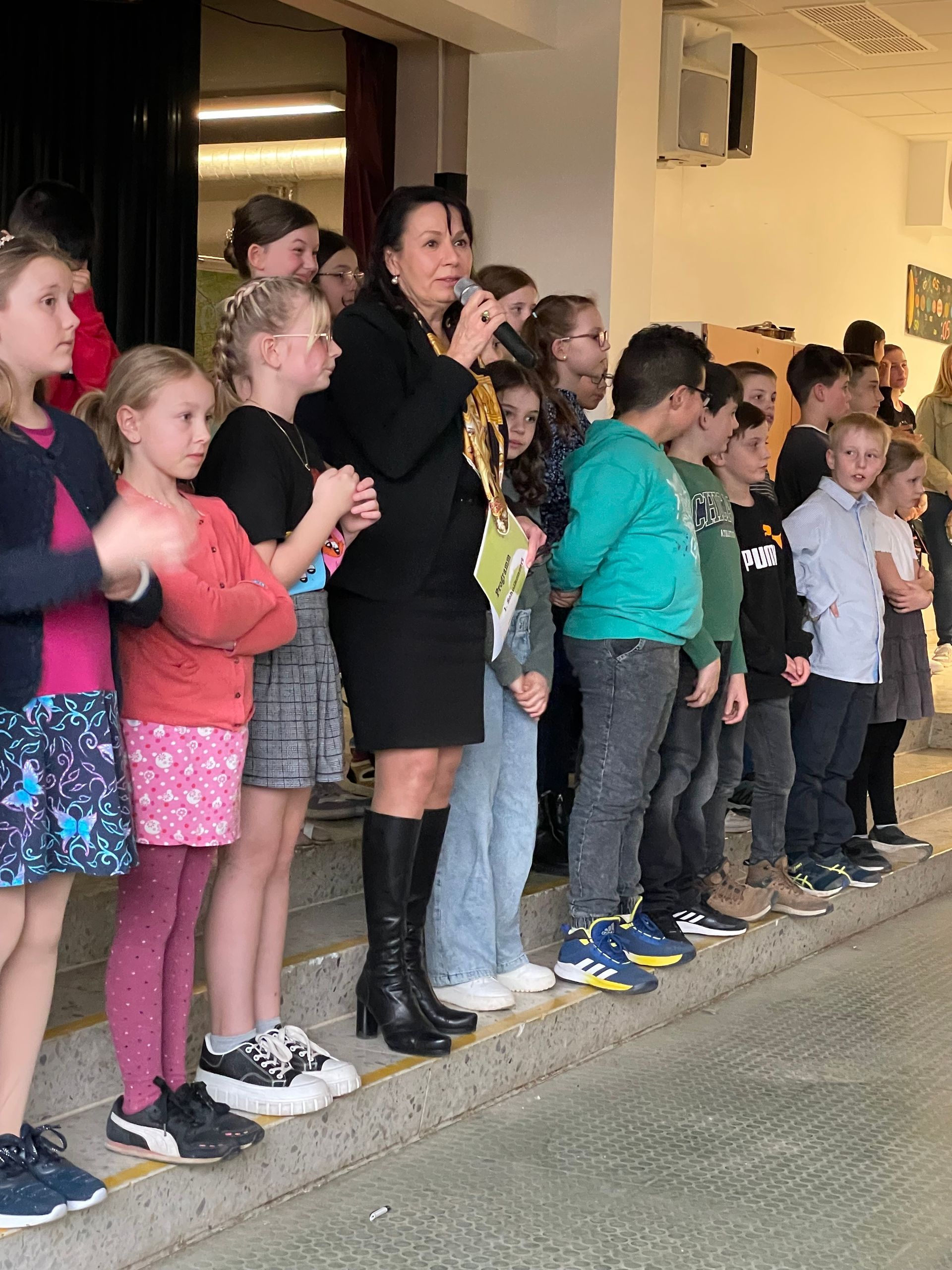 Riesiger Andrang herrschte beim ersten Schulkonzert der Freiherr-vom-Stein-Europaschule in Hünfelden. Den Auftakt zu dem abwechslungsreichen Programm machte nach der Begrüßung durch Schulleiterin Judith Lehnert der neu gebildete Chor der 3. Klassen mit den Stücken „Mit Musik geht alles besser“ und einer modernen Version der Europahymne „Ode an die Freude“ unter der Leitung von Elena Lyamkina. In Zusammenarbeit mit der Musikschule Kilian führte die Bläserklasse vier Stücke auf, wobei die Schülerinnen und Schüler schon beachtliches Können zeigten. Von der vierten bis zur siebten Klasse gibt es für unsere Schülerinnen und Schüler die Möglichkeit, die Bläserklasse als AG-Angebot zu wählen. Nach der Coronazeit war dies der erste öffentliche Auftritt der jungen Bläserklasse. Kira Meerbothe aus der Klasse 3c spielte anschließend auf der Violine ein Solostück, die „Jamaican Suite“. Für sie, wie auch für alle anderen Darbietungen, gab es lang anhaltenden Applaus. Auch die Kreismusikschule Limburg, mit der es auch eine neue Kooperation gibt, trug zum Gelingen des Abends mit fünf Stücken für Streicher, Gitarren und Streicher, Gitarren und Percussion bei. Sogar ein Cello und eine Bratsche waren schon dabei. Schülerinnen und Schüler der 3. Klassen können an unserer Schule je nach Neigung und Interesse wählen, ob sie in einer Musikstunde ein Streichinstrument, Gitarre oder ein Percussionsinstrument erlernen wollen oder lieber am Chorunterricht teilnehmen. Zwischen den Beiträgen der Kreismusikschule sorgten Conrad Merkel (Klasse 4c) auf dem Klavier und Amilia Elsemüller mit der Mundharmonika für musikalische Genüsse. Auch Emilia Neumann (3d) und Emily Filatov (5Rb) begeisterten die Gäste mit ihren Klavierstücken. Nach rund einer Stunde endete das erste Schulkonzert mit dem Chor der 3. Klassen und den Stücken „We are the world“ und dem Schulsong, begleitet von viel Applaus für die jungen Musikerinnen und Musiker. Die über 100 aktiven Kinder erhielten zum Abschluss noch eine Urkunde und ein kleines Geschenk. Ermöglicht wurde der gelungene Abend durch die Zusammenarbeit zahlreicher Schülerinnen und Schüler, der Musikschule Kilian und der Kreismusikschule, der Tontechnik und zahlreicher Lehrerinnen und Lehrer, allen voran Michelle Meuser, die auch gemeinsam mit Schulleiterin Judith Lehnert durch das Programm führte. Motiviert durch den tollen Erfolg steht jetzt schon fest, dass es auch im nächsten Jahr wieder ein Schulkonzert geben wird.