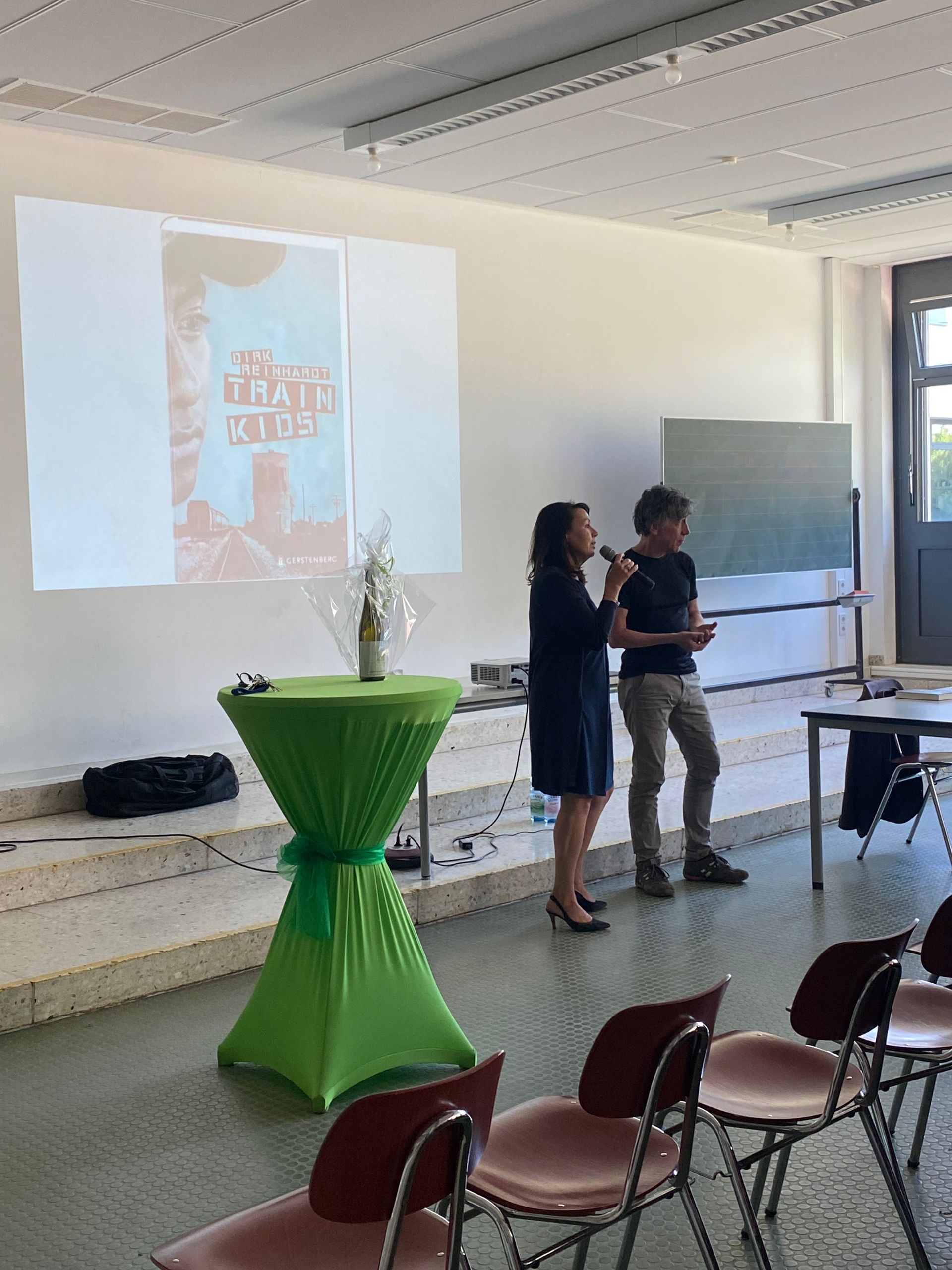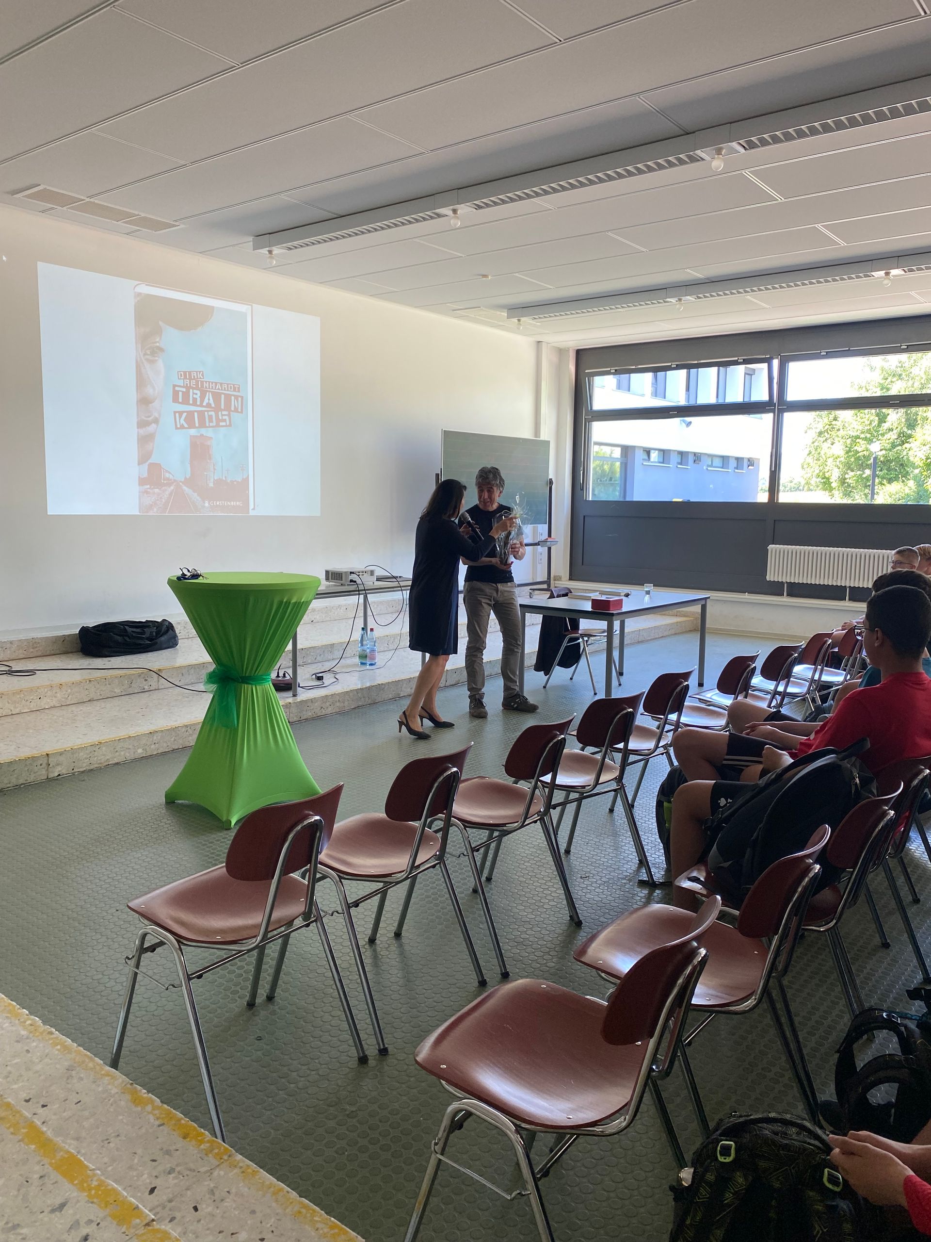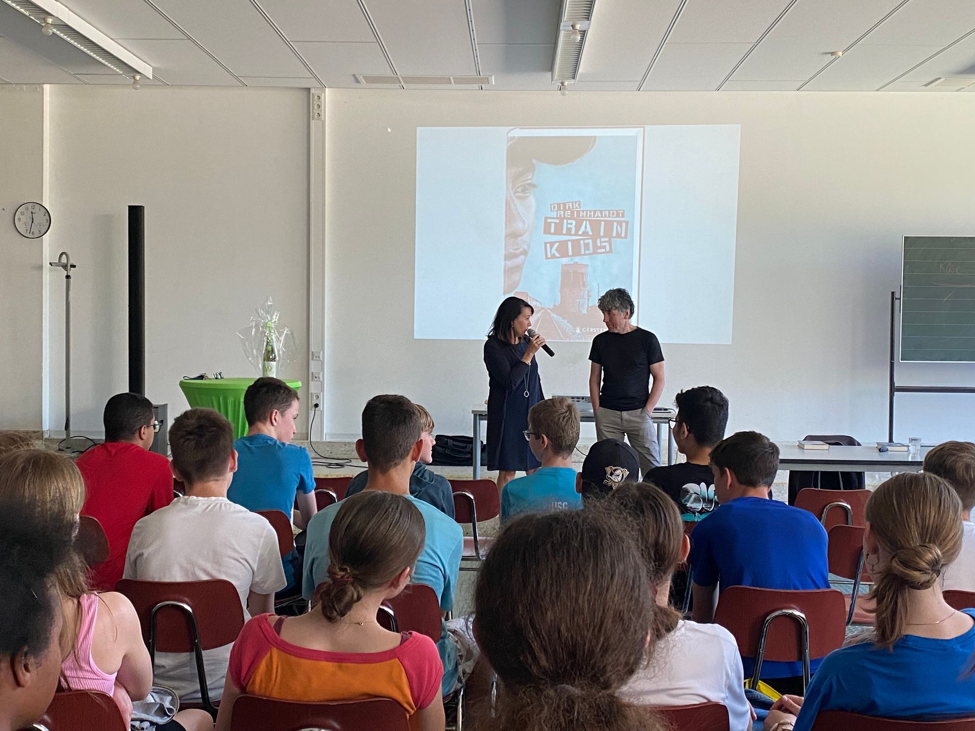 Sein Roman „Train Kids“ hat sich an der Freiherr-vom-Stein-Schule Dauborn inzwischen als Klassenlektüre im Jahrgang 7 etabliert. Unzählige Male war der renommierte Münsteraner Kinder- und Jugendbuchautor Dirk Reinhardt schon an unserer Schule, hat aus seinen vielen mehrfach ausgezeichneten Jugendromanen gelesen, seine Bücher signiert und den Schülerinnen und Schülern Rede und Antwort gestanden.