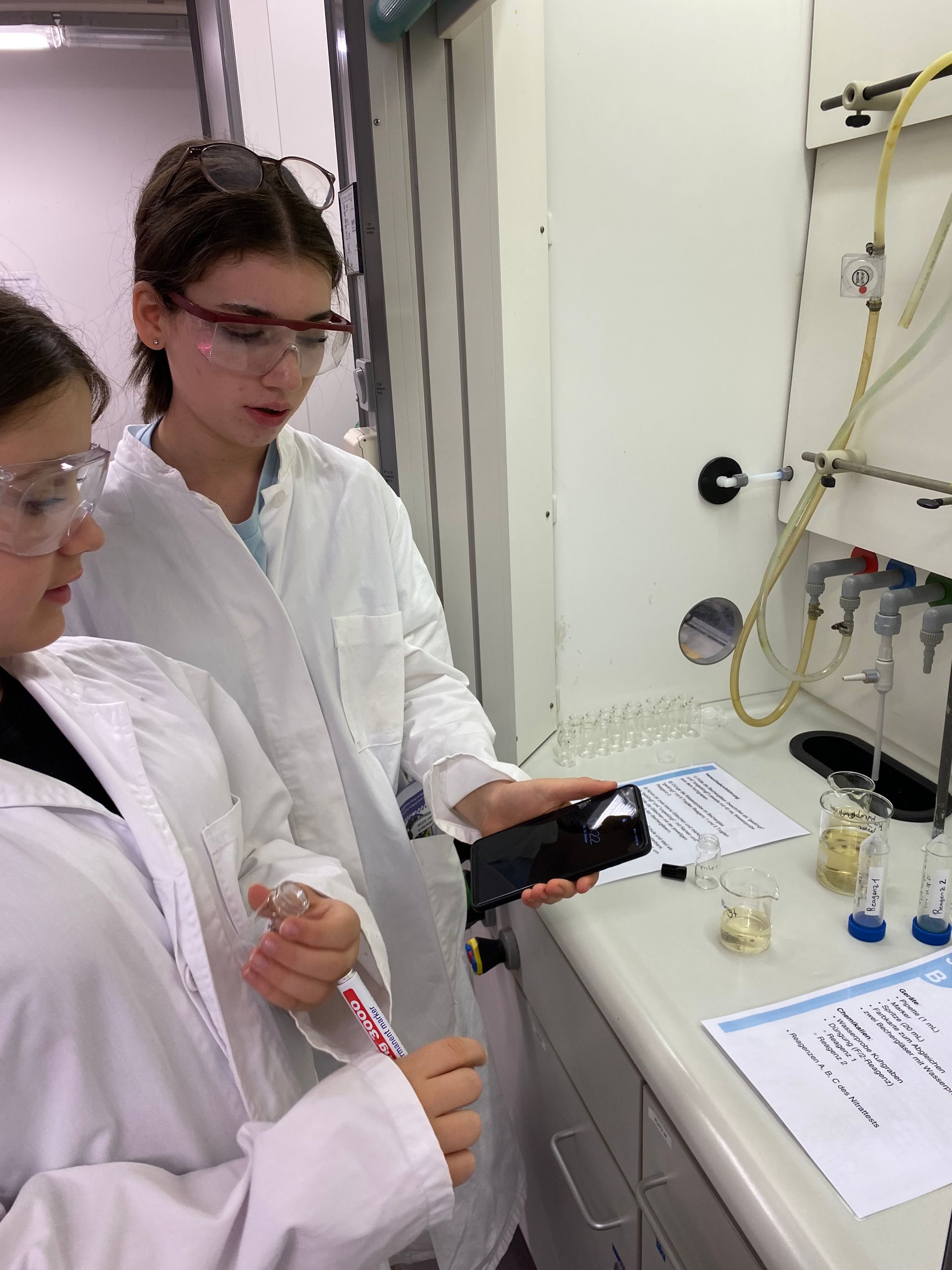 Die Schülerinnen und Schüler erhielten praxisnahe Anleitungen, lernten die Laborpraxis kennen und konnten mit Hilfe der Versuchsbeobachtungen ihre theoretischen Kenntnisse über die Salze festigen und erweitern.