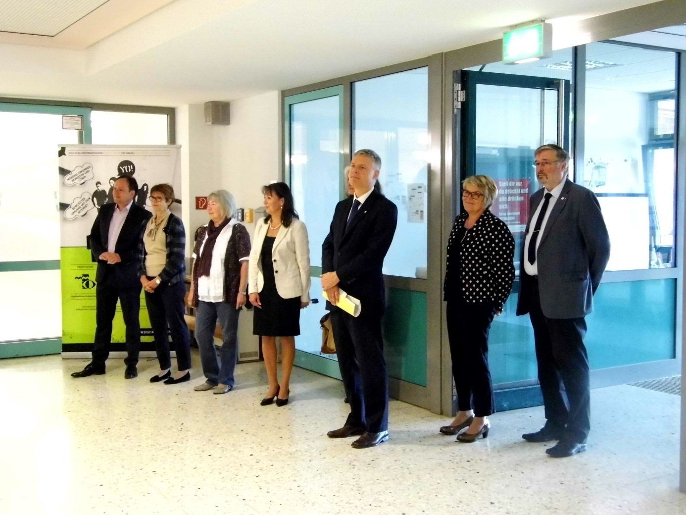 Zu Beginn der Veranstaltung begrüßte Frau Klein die anwesenden Gäste aus Landes- und Gemeindepolitik, die Vertreter der Elternschaft und der SchülerInnen und KollegInnen. In ihrer Rede wurde deutlich, wie wichtig die energetische Grundsanierung der Schule nicht nur zur Entlastung der Umwelt und des Finanzhaushalts, sondern auch im Hinblick auf eine glaubwürdige Unterrichtskultur ist. „Denn wie sollen wir Schülerinnen und Schülern einen verantwortungsvollen Umgang mit Energie vermitteln, wenn wir im Winter, bedingt durch zugige und veraltete Metallfensterrahmen, mit der Heizung den Schulhof erwärmen?!“