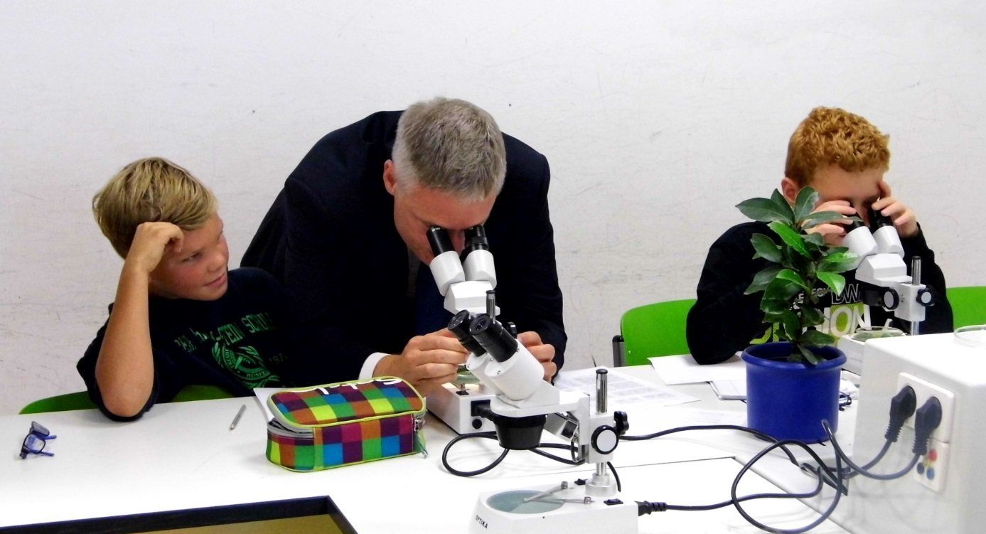 Ebenso gab es Einblicke in den naturwissenschaftlichen Unterricht der Klassen 5 und 6, die schon in dieser Altersstufe in die Bereiche Chemie, Physik, Biologie und Technik/Robotik eingeführt werden und handlungsorientiert Experimente durchführen dürfen, was bei den erwachsenen Besuchern auf sehr großes Interesse stieß.