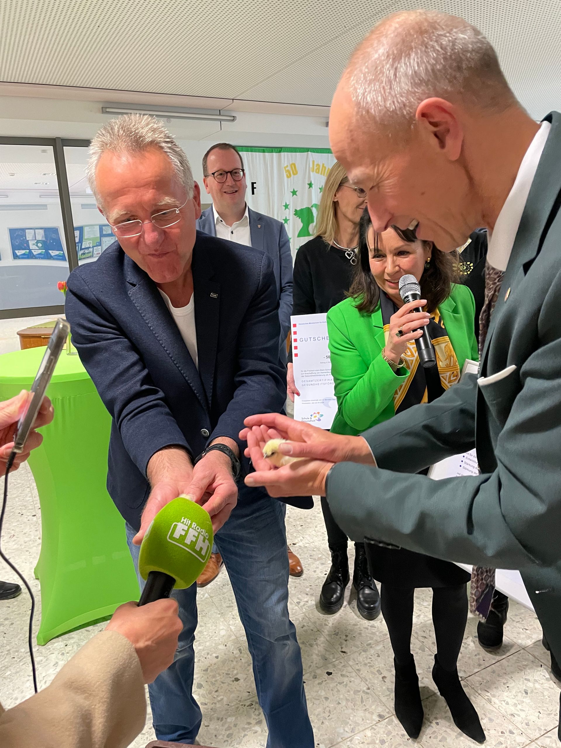 Im Rahmen seines Besuches an der Freiherr-vom-Stein-Schule am 22.04.2024 überreichte der Minister für Kultus, Bildung und Chancen Armin Schwarz der Schulleiterin Judith Lehnert das Gesamtzertifikat „Gesundheitsfördernde Schule“.