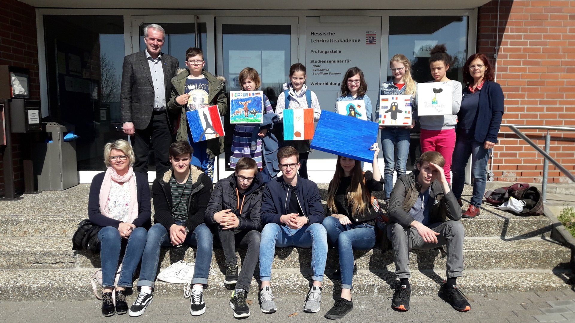 In Gießen trafen sich am 11. April jeweils 12 Schülerinnen und Schüler von jeder Schule, um an Workshops teilzunehmen, die von LIVs des Studienseminars mit viel Einsatz vorbereitet worden waren. Begleitet wurden die Jugendlichen von Lehrern ihrer Schule. Die Veranstaltung begann mit einem Impulsvortrag von Christian Lemmer von Europe direct und ergänzenden Grußworten von Behzad Borhani vom Stadttheater Gießen. Beide verdeutlichten den Jugendlichen, dass die Freiheit, der Frieden und die Demokratie in Europa nicht selbstverständlich sind und dass die Jugendlichen schon aktiv dazu beitragen sollten, dass diese Europäischen Werte auch in Zukunft erhalten bleiben.