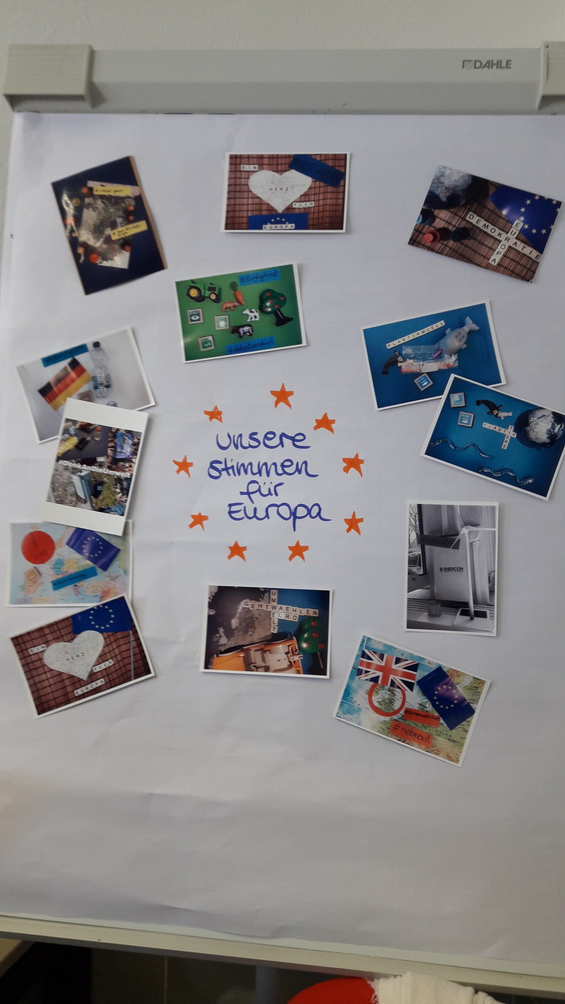 So waren außer den Gemälden der Grundschüler z.B. kleine solarbetriebene Windräder entstanden, originelle Werbeideen für die Europawahl, Fotopostkarten von kleinen Installationen und kurze Videos zum Thema FAKE NEWS.