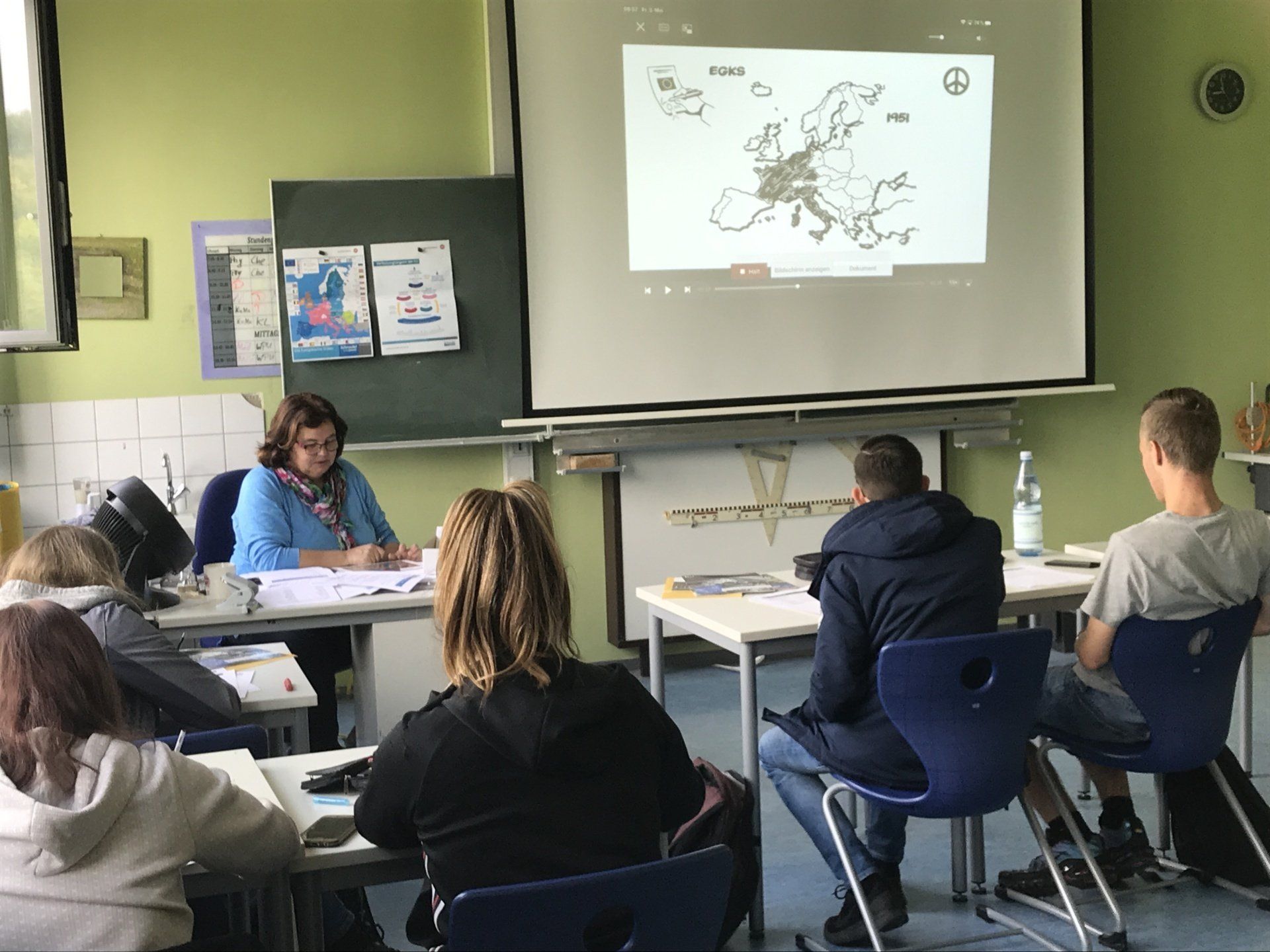 Ein heiß diskutiertes Thema war, wie der Aufschwung rechtspopulistischer Parteien die europäische Politik in Zukunft verändern wird, da es ja bereits in einigen Ländern Schwierigkeiten zur Bildung einer Koalition gab. In einem Punkt waren sich jedoch alle Schüler einig: Für den Frieden in Europa, den freien Handel, die Reisefreiheit, etc. ist die europäische Union unverzichtbar. Ein gutes Beispiel dafür ist das Verhältnis zwischen Deutschland und Frankreich. In der Vergangenheit, vor allem vor dem 2. Weltkrieg und zur Zeit des deutschen Kaiserreichs, waren Deutschland und Frankreich Erzfeinde. Nach dem 2.Weltkrieg hat sich das Verhältnis glücklicherweise entspannt und die beiden Nationen wurden zu Freunden. Zum Glück gab es seit 1945 keine großen Kriege mehr in Europa, abgesehen vom Jugoslawien-Konflikt und das soll in Zukunft natürlich auch so bleiben. Auch das ist ein besonderes Verdienst der Europäischen Union!
