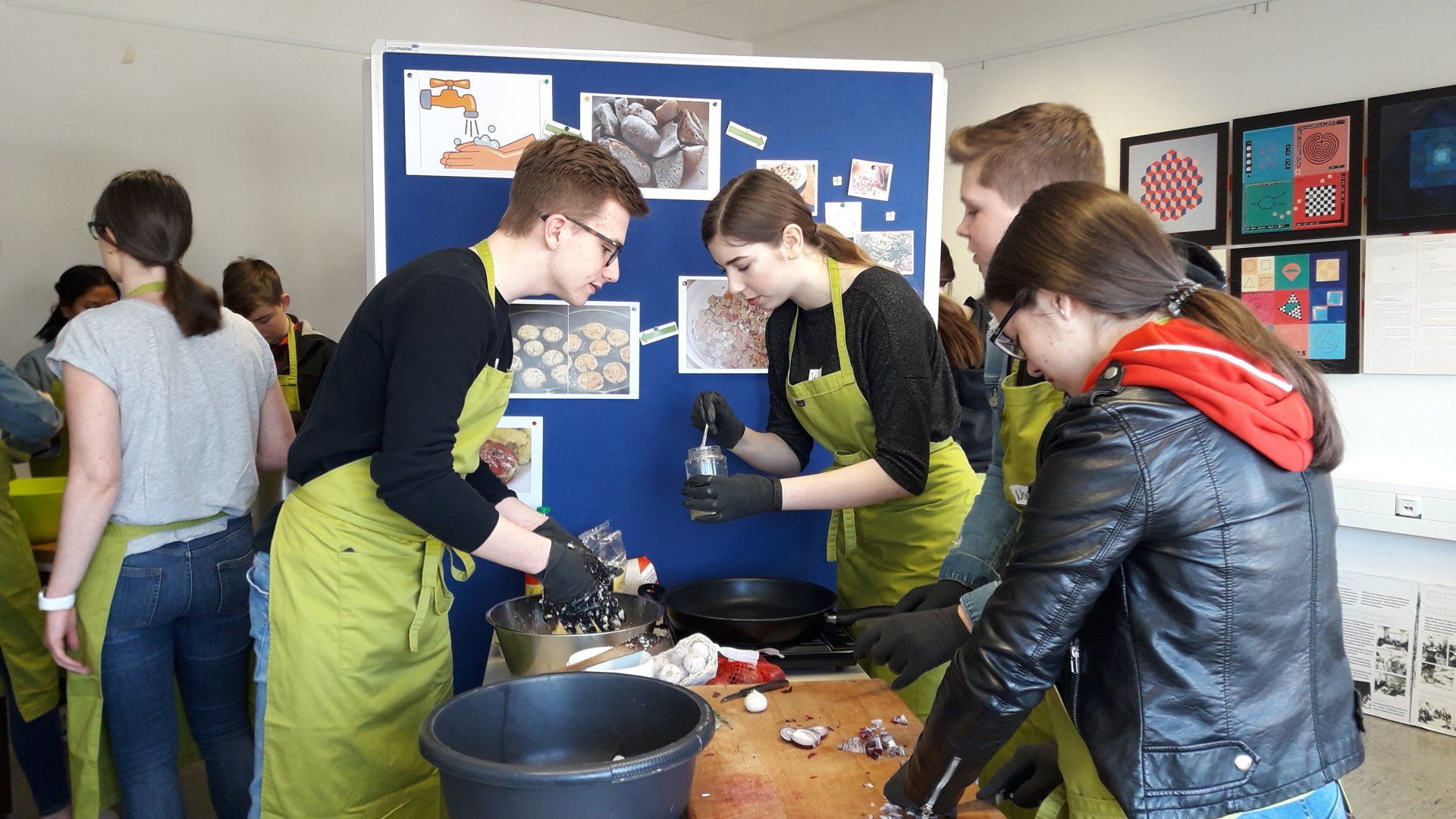 Unsere Schüler der Sekundarstufe nahmen am Workshop Nr.4 teil und kochten aus Resten, frittierten Kartoffel- und Möhrenschalen und verarbeiteten bereits gekochte Zutaten in einem Hefe- oder Brotteig aus trockenem Brot, Milch und Eiern.