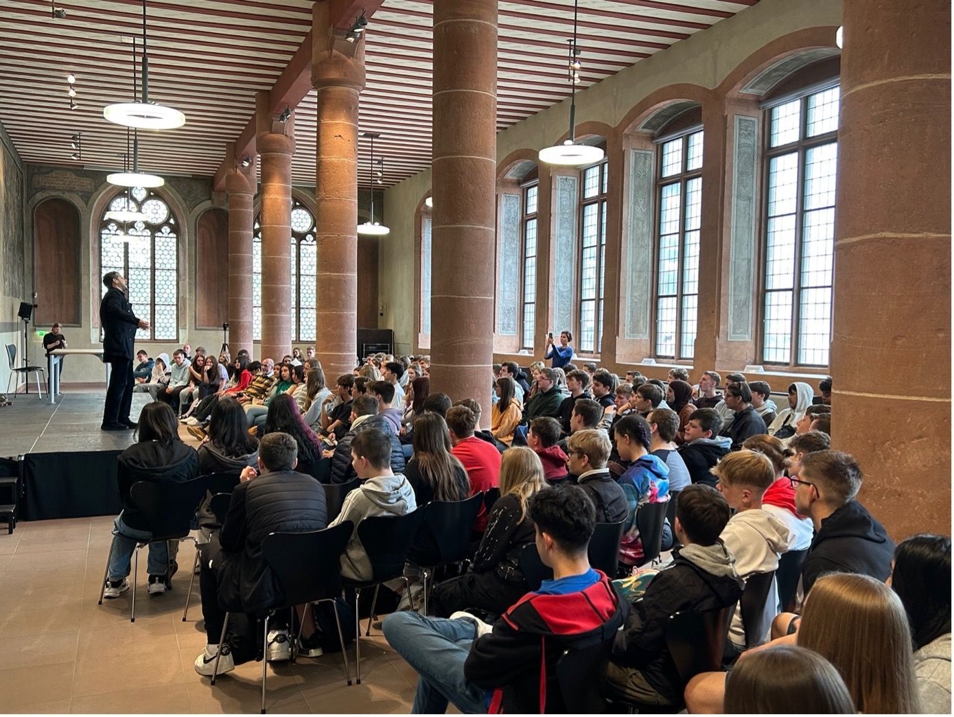 Im anschließenden Gespräch der Schülerinnen und Schüler mit Ingo Espenschied, meinte zum Abschluss Elias Erdmann (10Ga), dass – egal, wie kompliziert einem die Europäische Union hin und wieder erscheinen möge – eine Welt, in der jedes europäische Land nur für sich selbst einstehen würde, noch viel komplizierter werden würde.