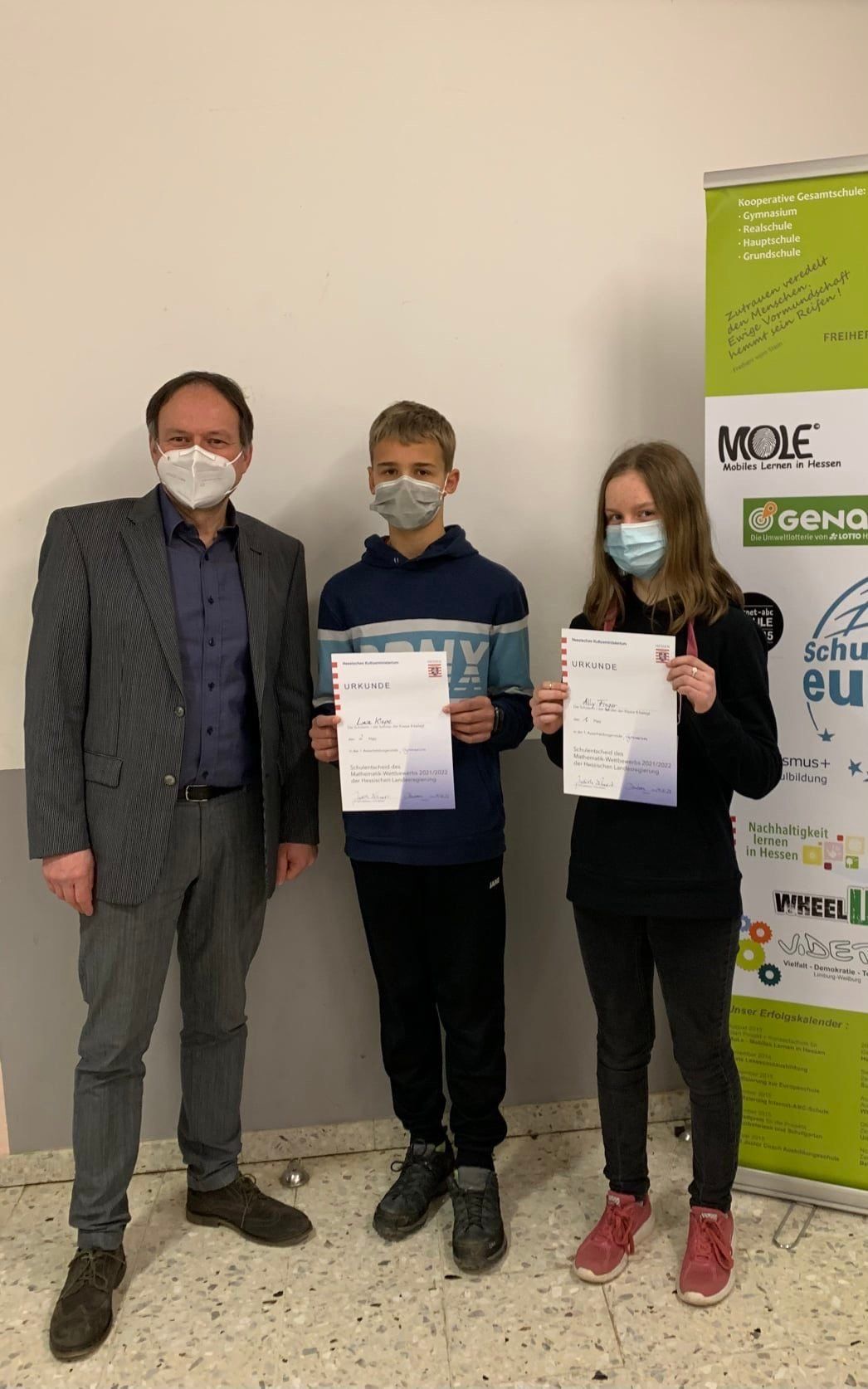 Bennet Loth ist zweiter Kreissieger im Gymnasialbereich des Mathematikwettbewerbs. Eine tolle Leistung, über die sich die gesamte Schulgemeinde sehr freut. Gestartet ist der Mathewettbewerb landesweit am 3. Dezember 2020 mit ca. 50.000 Schülerinnen und Schüler. Es handelt sich dabei um einen Klausurwettbewerb im Fach Mathematik, der in drei Runden. (Schul-, Kreis- und Landesebene) durchgeführt wird. Den Wettbewerb gibt es bereits seit 51 Jahren. Er wird unterstützt von Hessen Metall. Die 2. Runde fand im März statt. Bennet hat nun auf der Kreisebene einen sensationellen zweiten Platz erreicht.