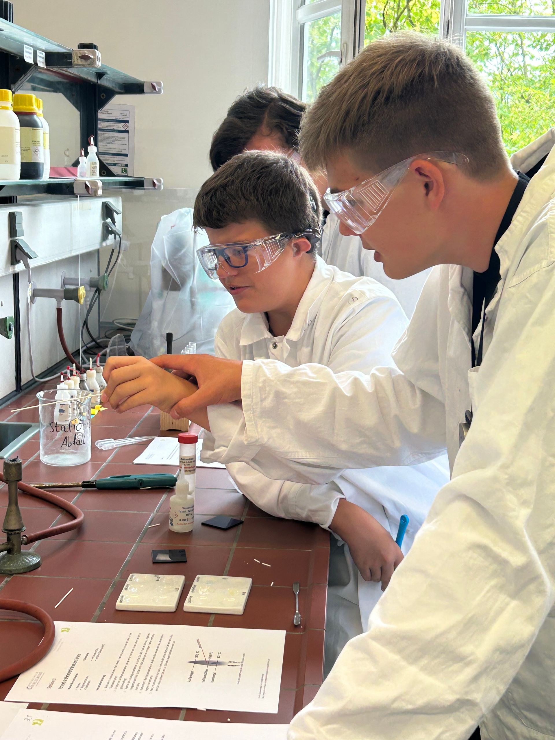 Die Schülerinnen und Schüler erhielten praxisnahe Anleitungen, lernten die Laborpraxis kennen und konnten mit Hilfe der Versuchsbeobachtungen ihre theoretischen Kenntnisse über die Salze festigen und erweitern.