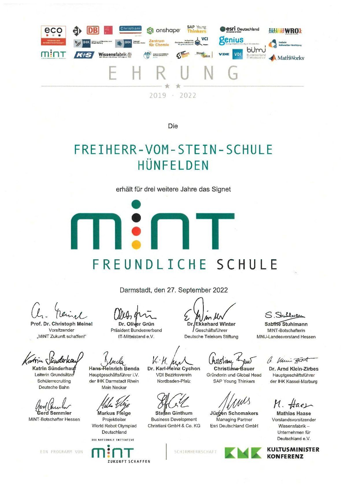 Erneute Ehrung als "MINT-Freundliche Schule"