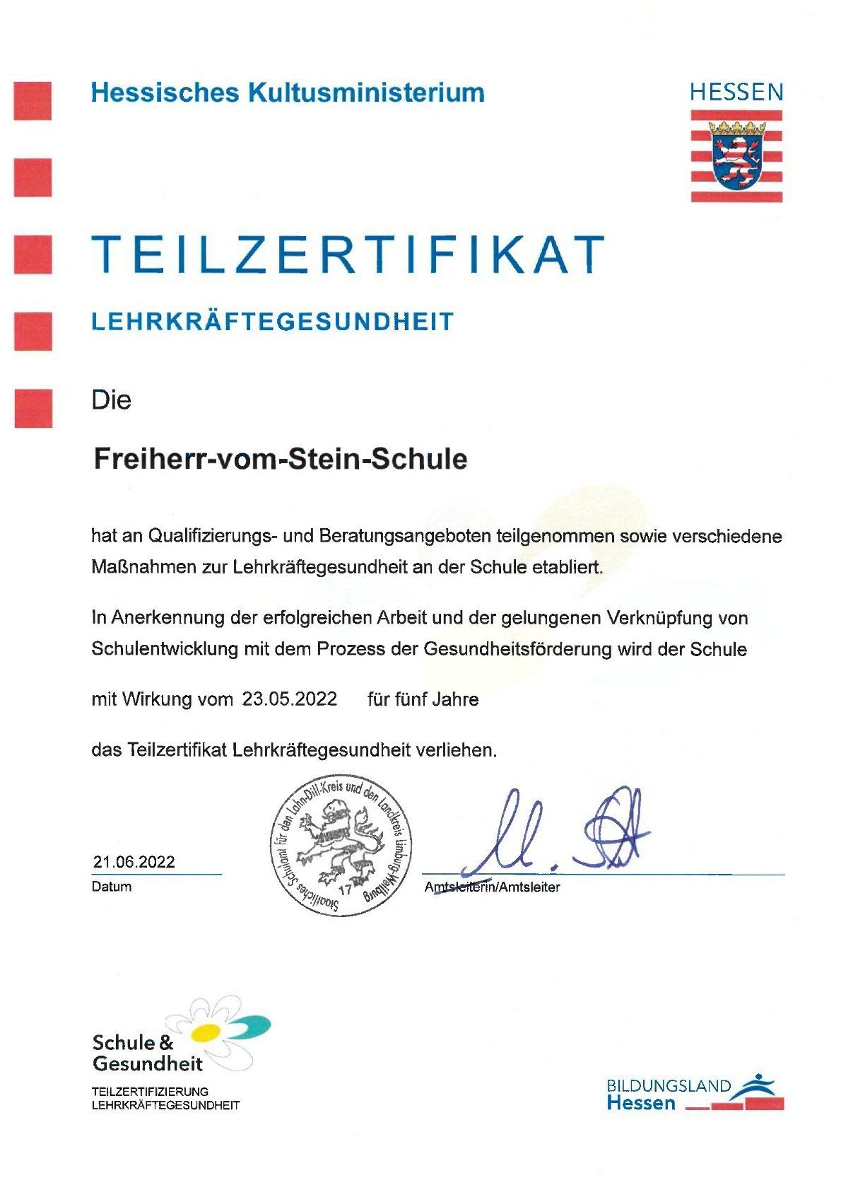 Zertifizierung als "Gesundheitsfördernde Schule"