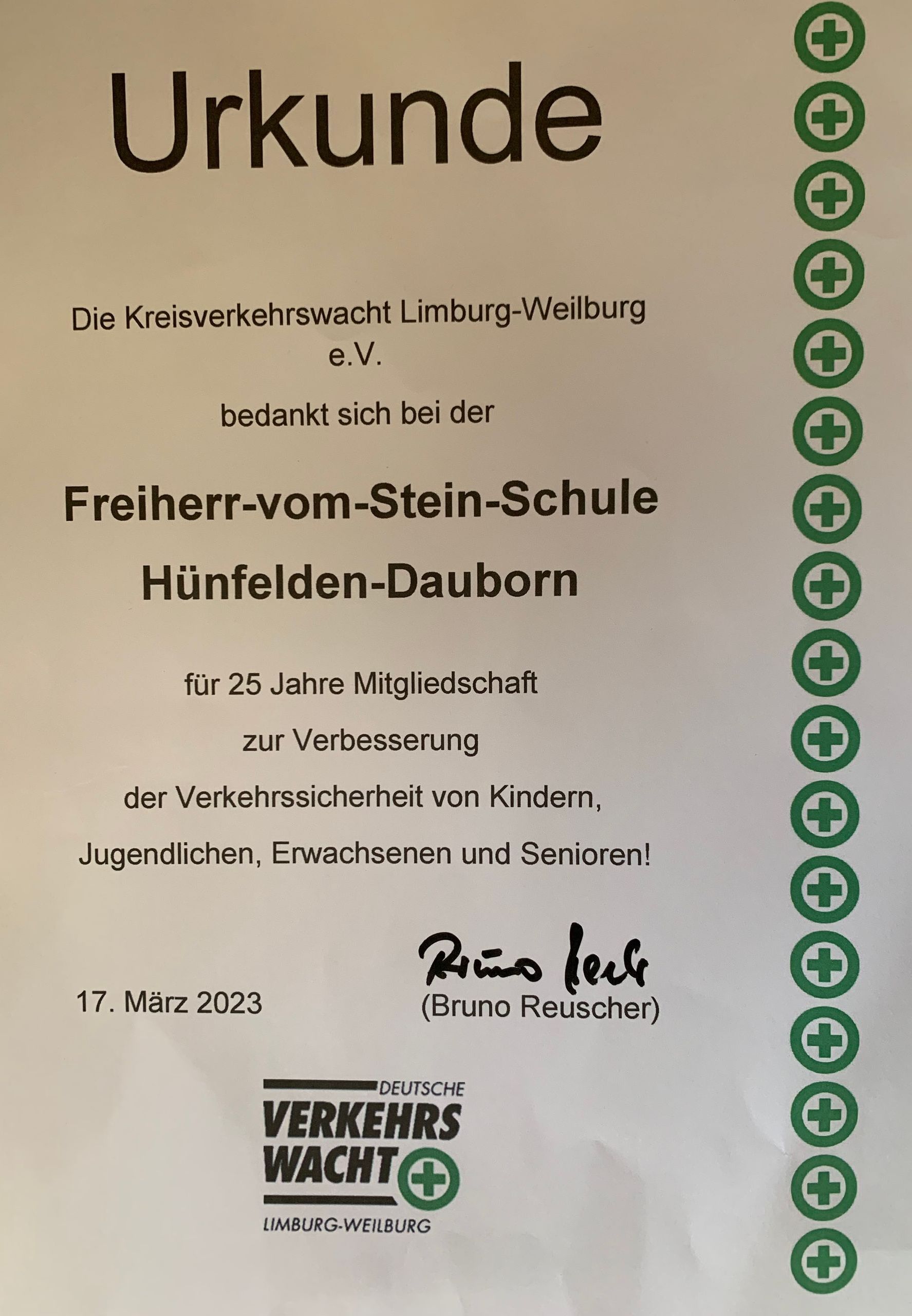 Urkunde 25 Jahre Mitgliedschaft Kreisverkehrswacht